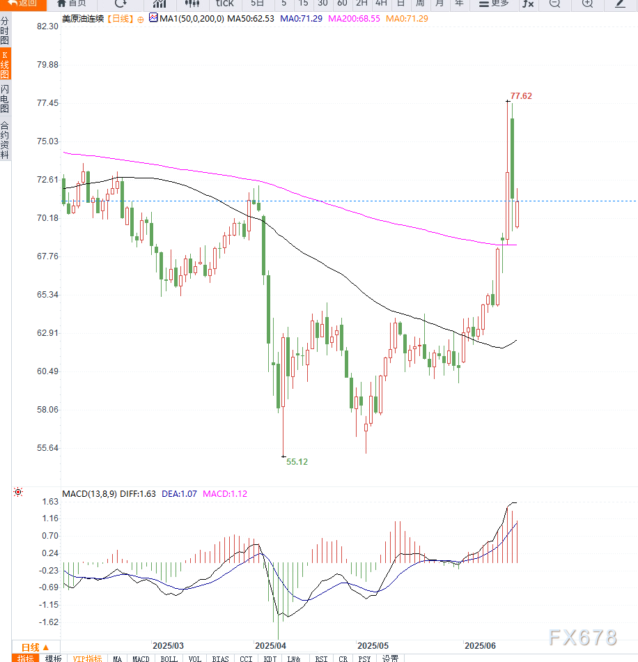 下方支撑位关注70.00美元与68.90美元一线。整体图形结构显示短线偏多趋势,但需警惕地缘消息带来的高波动回调风险。
