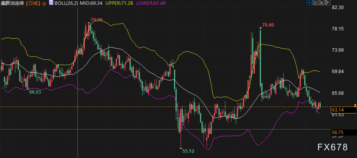 EIA称,2026年初的价格下跌预计将促使欧佩克+和一些非欧佩克产油国减少供应,从而减缓当年晚些时候的库存增长。较低的价格也可能导致需求小幅增加,虽然阿拉斯加会晤相对乐观,但因没有达成任何协议,还存在不确定性,油价下周一聚焦美俄方面进一步言论,若继续乐观,美油日线或测试下探布林带下轨61.70美元/同附近。