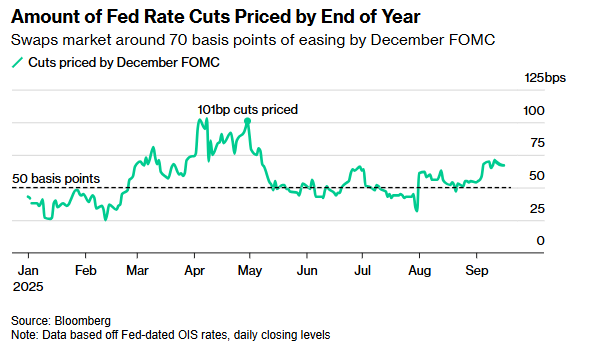 有迹象显示,利率市场交易员正在加大押注,预计美联储将在今年剩余的三次政策会议上至少实施一次直降50个基点的降息。而尤有大胆者,更是下重注预计今晚就将上演这一幕……